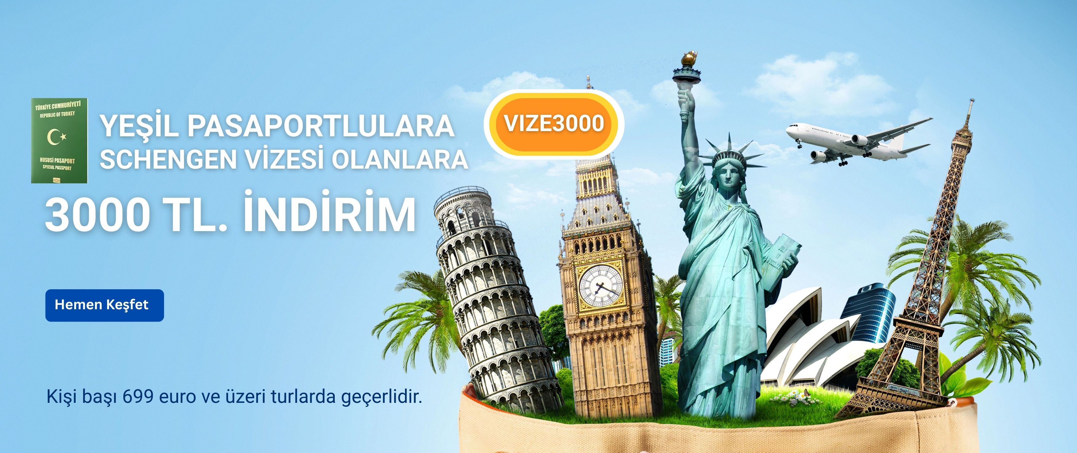 Yurt içi ve yurt dışında birçok destinasyon için özel tur paketleri, otel rezervasyonları ve vize işlemleri konusunda uzman ekibimizle yanınızdayız.